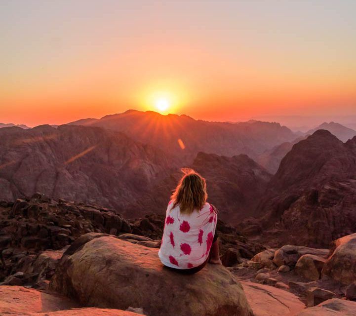 El monte se encuentra en la parte sur de la península del Sinaí, y se puede acceder a él como parte de una excursión desde Sharm el-Shej o Dahab. Una vez en la base de la montaña, podremos empezar una caminata de unas dos horas antes de que salga o se ponga el sol hasta llegar a nuestro destino.