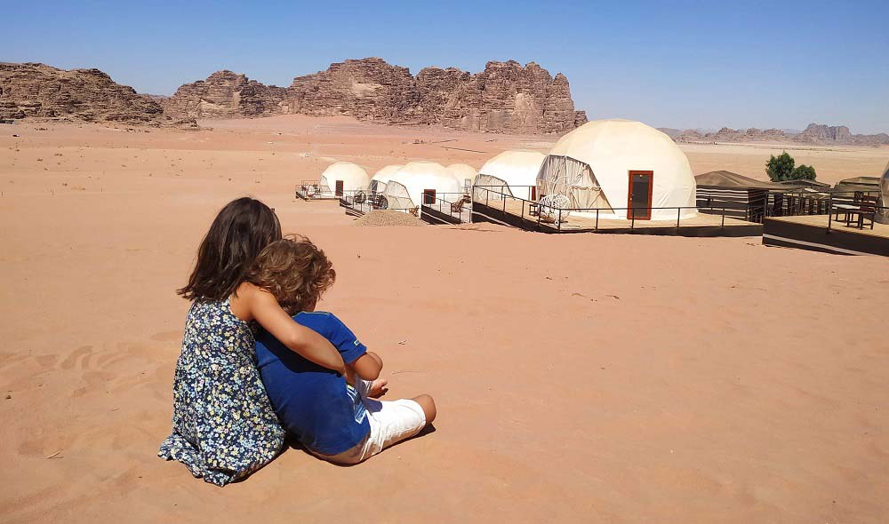 Dormir una noche en el Desierto de Wadi Rum. Acampar bajo las estrellas en este lugar, que ha sido plató de multitud de películas, será una de las experiencias que más les gustarán, sin duda. Y si el niño es suficientemente mayor, no te lo pienses y haz una excursión por esta zona en 4x4.